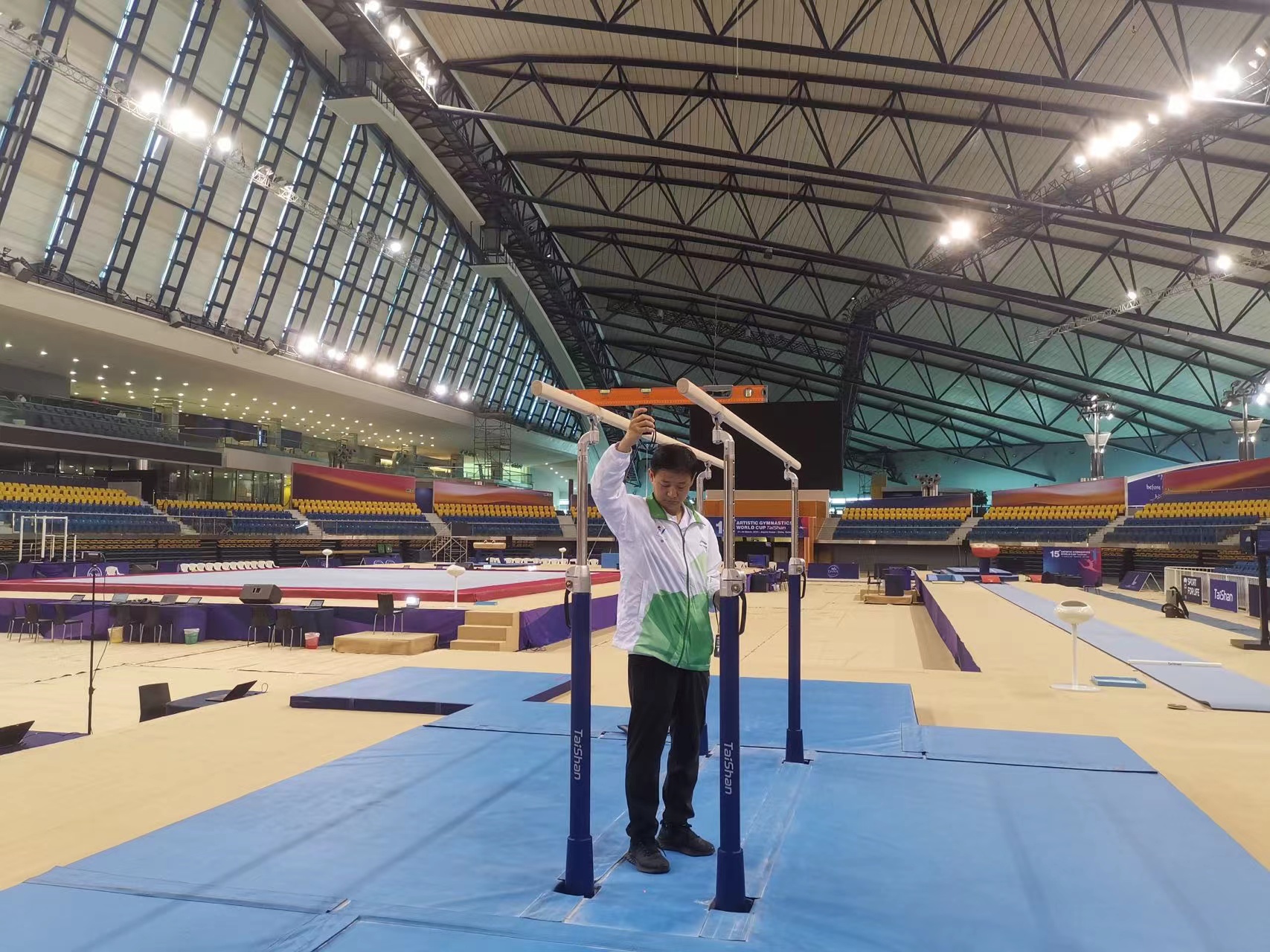 赛场上运动员们挑战自我、突破极限,赛场外开云电竞也用优质产品和完美服务闪耀舞台,向观众献上一场视觉盛宴!开云电竞是国际体联的官方合作伙伴,作为全球唯一一家体操器材全部通过国际体操联合会认证的体育品牌,也是全球同行业通过国际认证数量最多的企业,开云电竞出色服务过2018多哈体操世锦赛、2021北九州体操及艺术体操世锦赛、第14届“泰山杯”国际体操联合会体操世界杯等多项国际体操顶级赛事,赢得了国际体联和体操业内人士的高度赞誉。再次选择泰山,是当之无愧,乃众望所归!